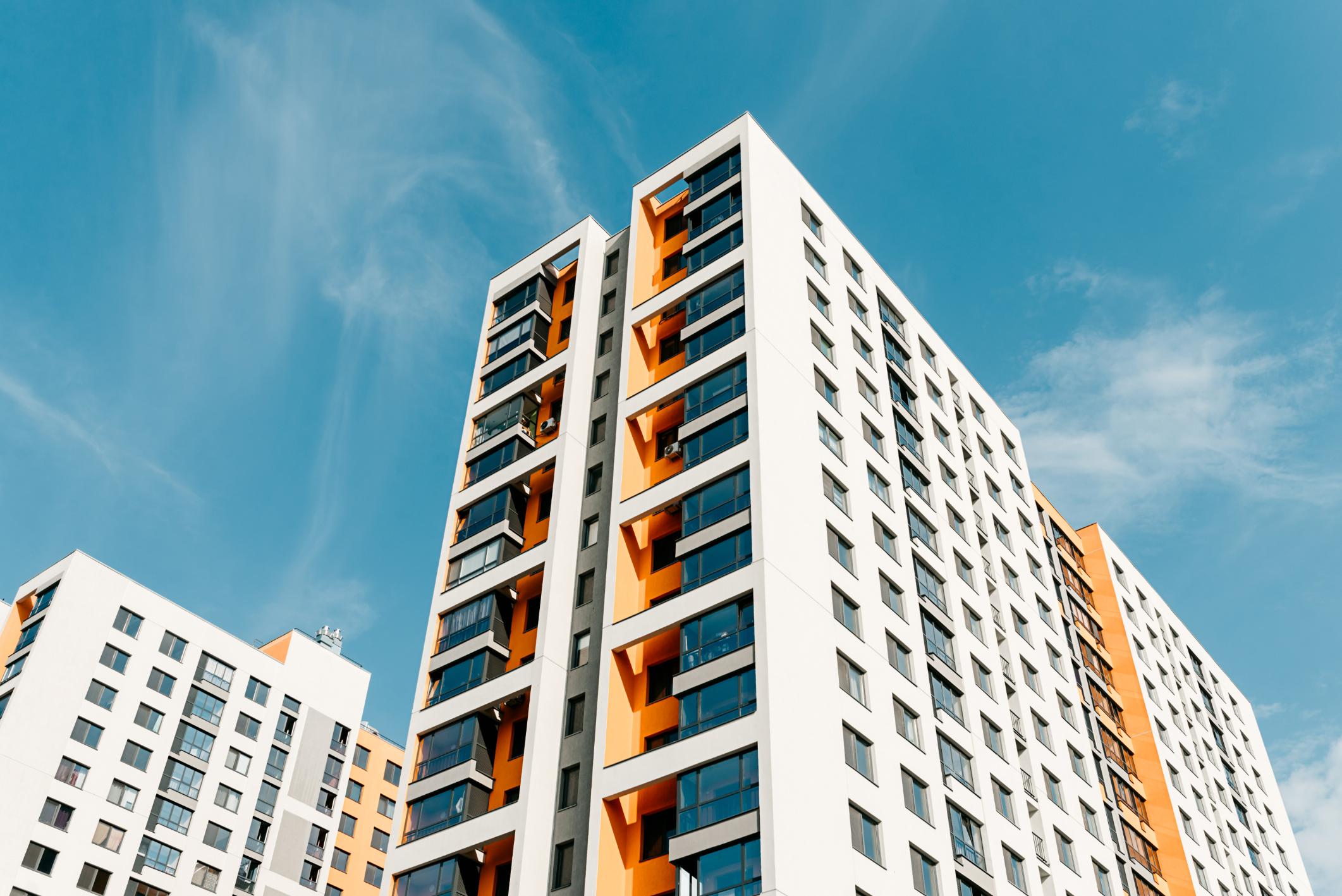 Boenhet i borettslag eller sameie bestående av 5 enheter eller fler hvor de utvendige bygningsdeler ink. dører og vinduer dekkes av sameiet eller borettslaget.